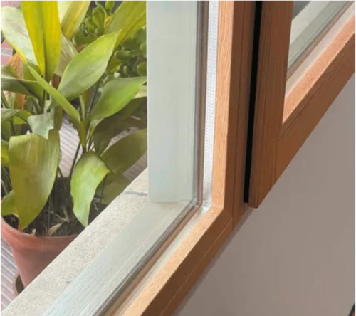 Fusteries de fusta laminada de pi amb vidres baix emissius i de control solar: 44.1 / 12A / 33.1 BE.
